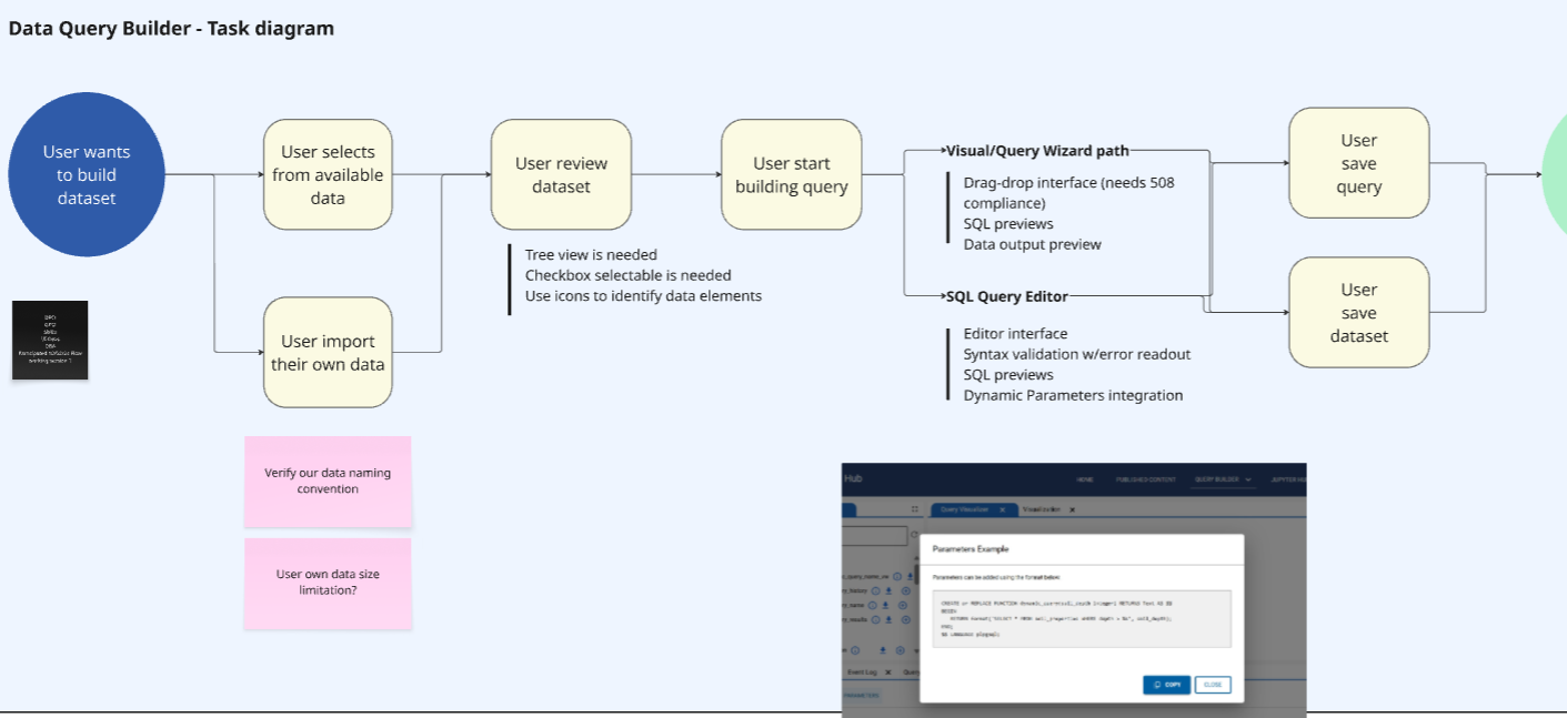 To inform the design process, I collaborated closely with a CX researcher and a CX content strategist from my team, both deployed part-time on this project. Since direct access to end-users was limited by USDA policies, we recruited subject matter experts to participate in user research activities such as interviews, feedback sessions, and co-design workshops. These experts provided valuable insights into workflows and challenges. Our CX-specific actions included: